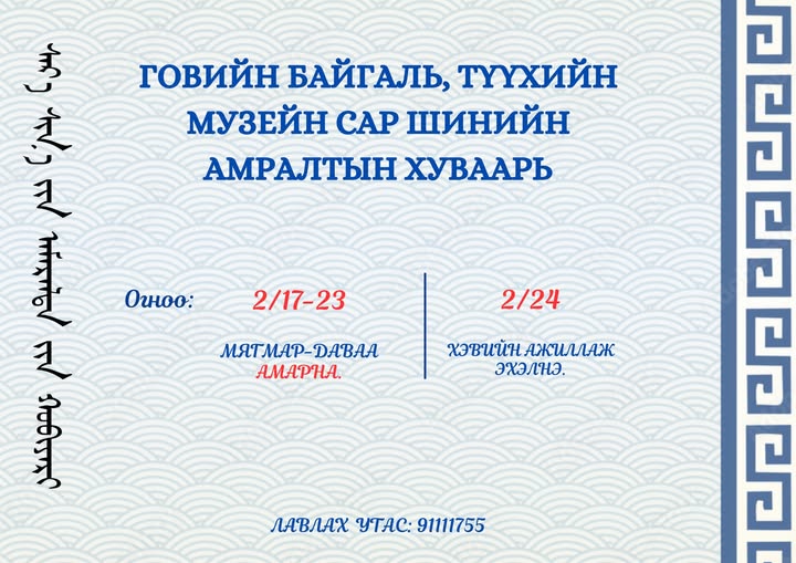 БАЙГАЛИЙН ТҮҮХИЙН МУЗЕЙ-тэй хамтын ажиллагааны хүрээнд...